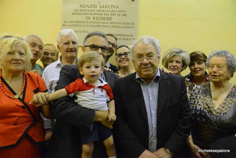 Venerdì 11 luglio 2014 alle ore 12.00 presso la Direzione Generale dell’Azienda Ospedaliero – Universitaria “Ospedali Riuniti” di Foggia si è svolta una cerimonia con la posa di una targa per ricordare il Dott. Nunzio Sarcina, che per oltre 30 anni fu protagonista indiscusso della gestione e dello sviluppo degli “OO.RR.”, con rettitudine e lungimiranza come Segretario Generale dell’Ente.