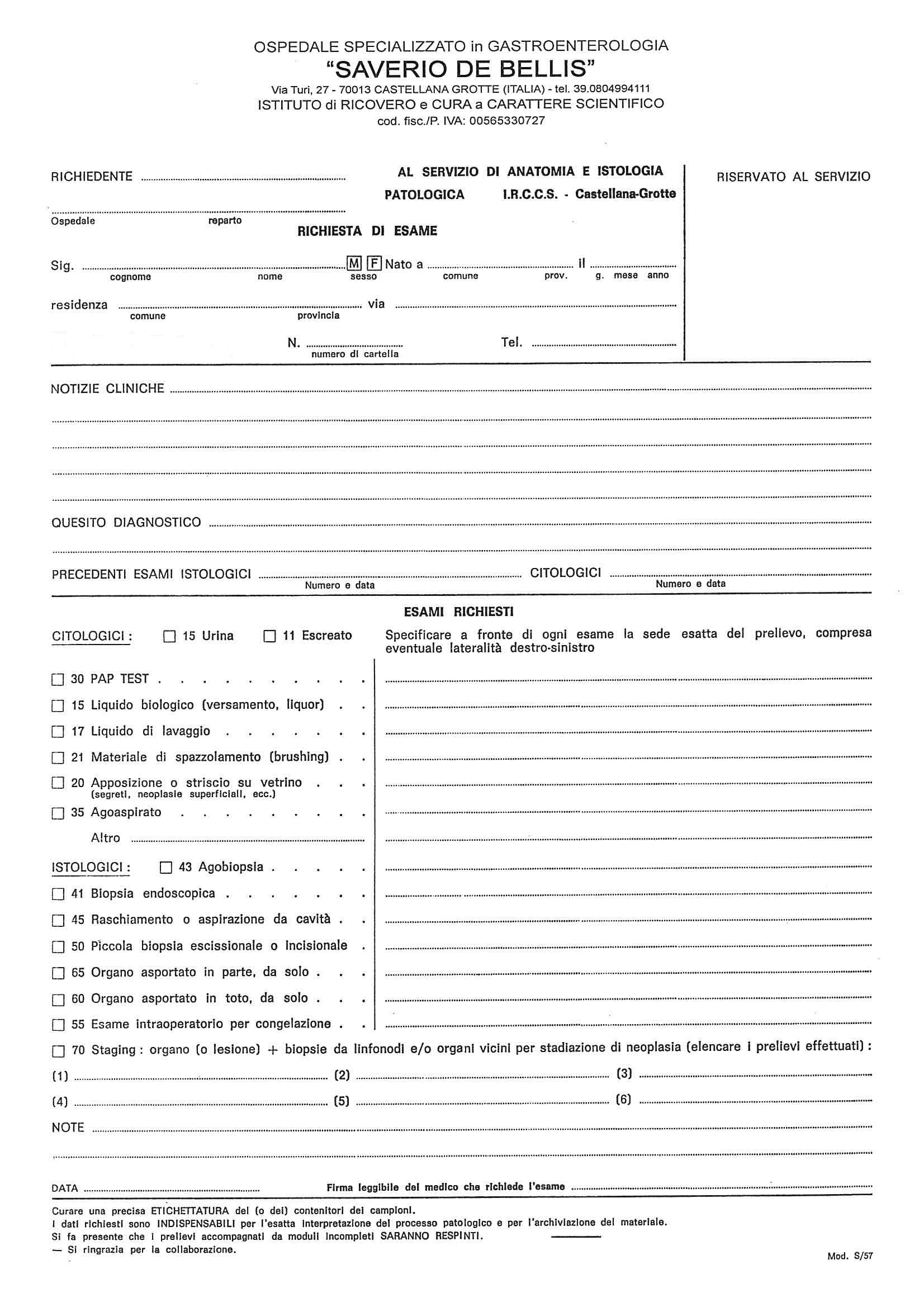 » Modulo di richiesta VETRINI Modulo di richiesta vetrini ed inclusi per consulenze presso altri ospedali